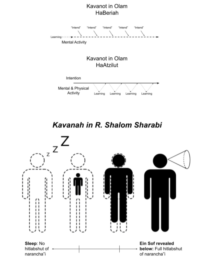 Based on Vital’s Sha’arei Kedusha, the Rashash hints further at the inner world cultivated through kavvanot. He calls the state of being where we cannot perceive the Ein Sof “slumber,” but through the devotional life of kavvanot, one can “awaken” the soul and perceive the Ein Sof (Nahar Shalom 39a). This state of wakefulness is one where the individual is attentive to the presence of Ein Sof in all things through their soul.