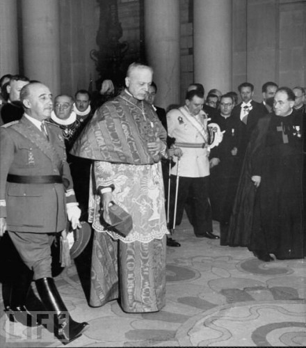 The trouble with Catholicism is psychology – a man like Francisco Franco is a schizophrenic. Franco can go to cathedral and knell. He can say “let your will be done” [The Rav translates it into Latin- not a direct quote from the mass but a free translation of Luke 22:42 nevertheless not my will, but thine, be done.] It is not hypocrisy. Franco delivers himself into God’s hands. In the cathedral, he is intoxicated by fragrance of the incense, and as long as the savior looks at him from the crucifix he is in God’s hands. But he can afterwards sign a death sentence on a revolutionary on the steps of the church. There is no connection between the two parts of his life.
