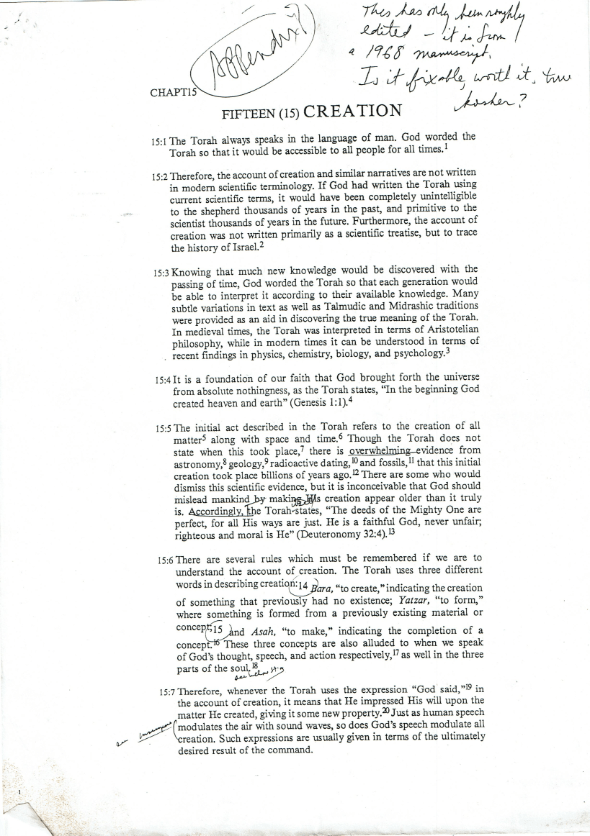 Below is a pdf of a full chapter of Aryeh Kaplan’s Handbook of Jewish Thought left out of the published work because he presents evolution as part of the basic tenets of Judaism. The already typeset chapter has an editor’s note across the top asking if the chapter is “fixable” and “true kosher”? There is also an editor’s note that dates the chapter to 1968 when Kaplan was leading a Conservative congregation in Dover NJ.